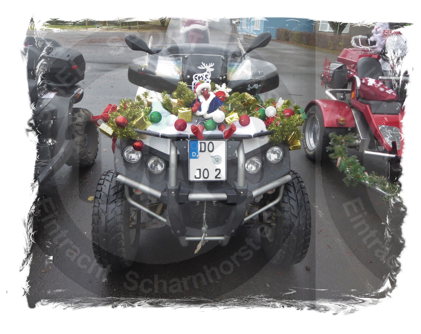 Der Jugendausschuss der DJK Eintracht Scharnhorst hat allen Scharnhorster Eltern am 7. Dezember die Möglichkeit angeboten, ihre Kinder im Alter von sechs bis zwölf Jahren einige Stunden in der Paul-Dohrmann-Schule zu betreuen. In dieser Zeit konnten die Eltern ohne Hektik Weihnachtseinkäufe tätigen. Unter fachlicher Anleitung erfreuten sich zahlreiche Kids an den Spiel- und Sportangeboten. Höhepunkt war der überraschende Besuch der Gruppe „Quadkinder“. In weihnachtlichem Outfit verteilten sie vor der Turnhalle kostenlos Geschenke an alle Kinder. Die ehrenamtliche Gruppe setzt sich für benachteiligte Kinder ein und erfreut sie mit ihren Auftritten.
