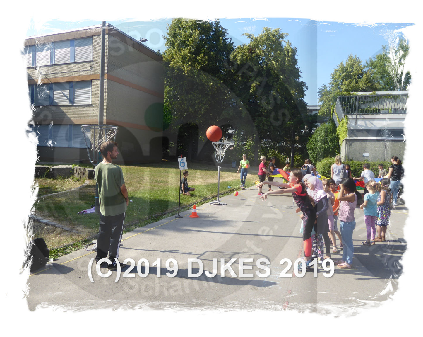 Strahlender Sonnenschein begleitete die Spaßolympiade der Jugend der DJK Eintracht Scharnhorst auf dem Schulhof der Kautsky-Grundschule.