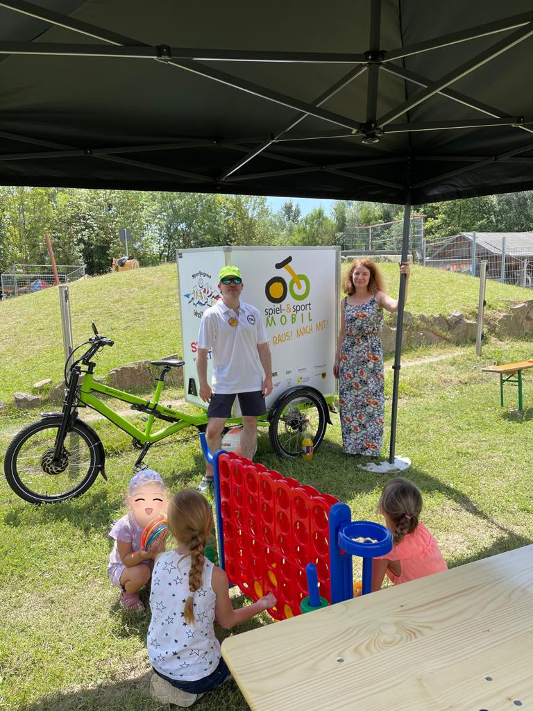Seit 2021 sind wir von den Osterferien bis einschließlich Herbstferien von montags bis freitags mit dem Spiel-Sport-Mobil (elektrisches Lastenfahrrad) auf Spielplätzen in Scharnhorst unterwegs.