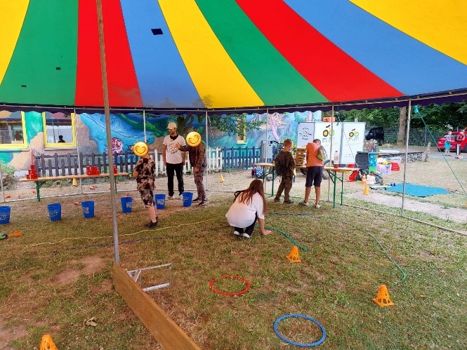 Viele Kooperationspartner, wie die Künstlerin Astrid Halfmann, die Spieletonne der OT der Schalom Gemeinde, das Flitzmobil sowie unser Spiel- und Sportmobil sorgten dafür, dass auf keinen Fall Langeweile aufkam. Es wurde gemalt, gesprungen und gelacht.