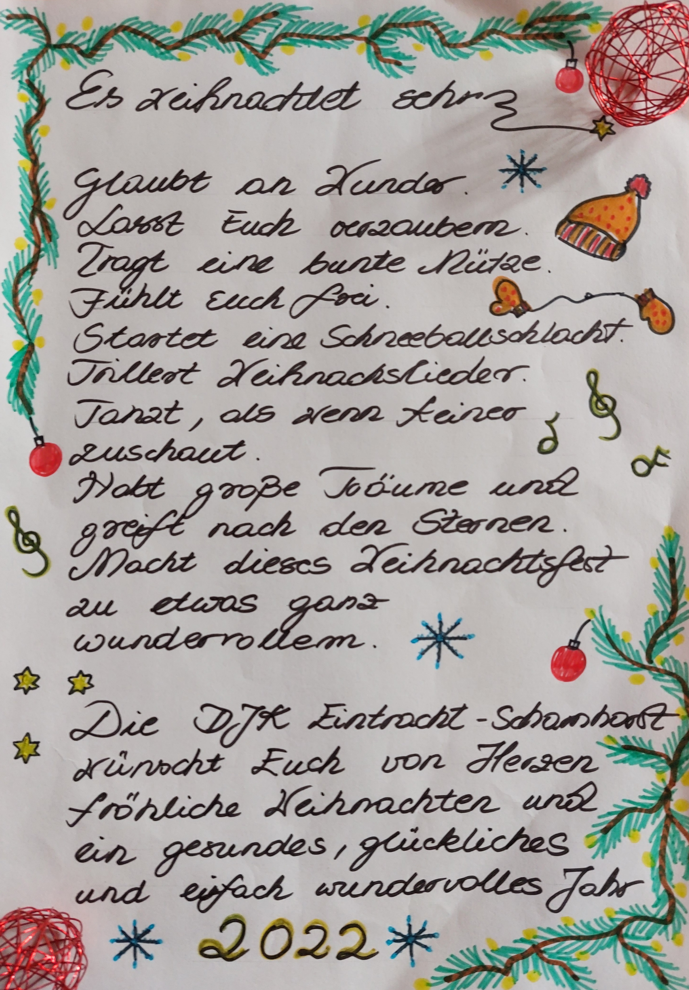 Die DJK Eintracht Scharnhorst wünscht allen ein tolles Weihnachtsfest und einen guten Rutsch ins Neue Jahr 2022.
